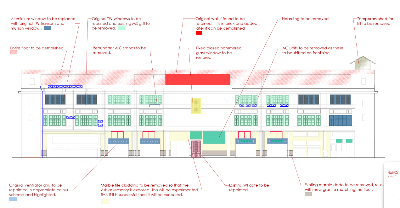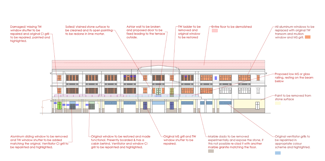 The ML Building, located within the CSMT precinct, is a heritage structure undergoing documentation, restoration, and conservation to preserve its architectural character and historical significance. The project emphasizes safeguarding the original architectural language, including its stone façade, fenestration pattern, and traditional material expression. The intervention respects the building’s historic identity while ensuring its continued usability, reinforcing its cultural importance within the CSMT heritage ensemble and contributing to the long-term preservation of the precinct.