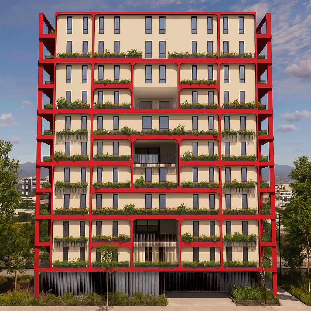 RSET is a junior and degree college project designed to create a progressive learning environment beyond conventional classrooms. The project integrates co-learning and leisure spaces as an essential part of the academic framework, enabling students to learn, interact, and relax in informal settings. As expressed in the façade, the building breaks the monotony of a typical institutional block through recessed volumes and layered openings that accommodate green-covered terraces and shared learning pockets across multiple levels. These intentional breaks introduce natural light, ventilation, and greenery, strengthening the connection between learning and well-being. A bold structural frame defines the elevation and clearly articulates the academic rhythm within. On the whole, the project enhances the learning experience by combining formal classrooms with flexible, green co-learning spaces that support collaboration, leisure, and holistic development.