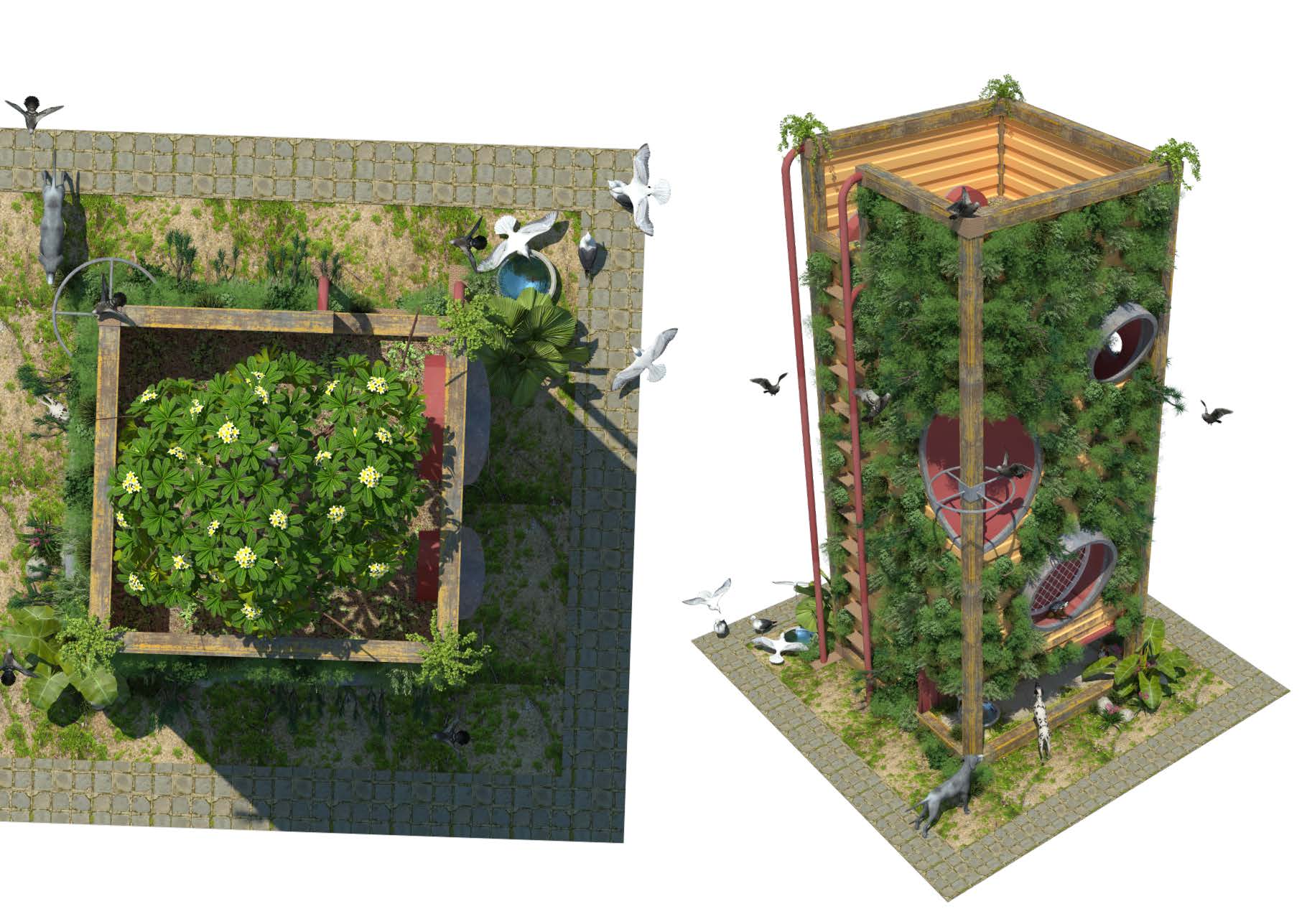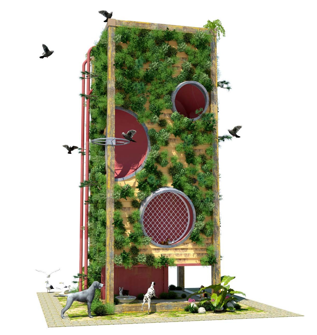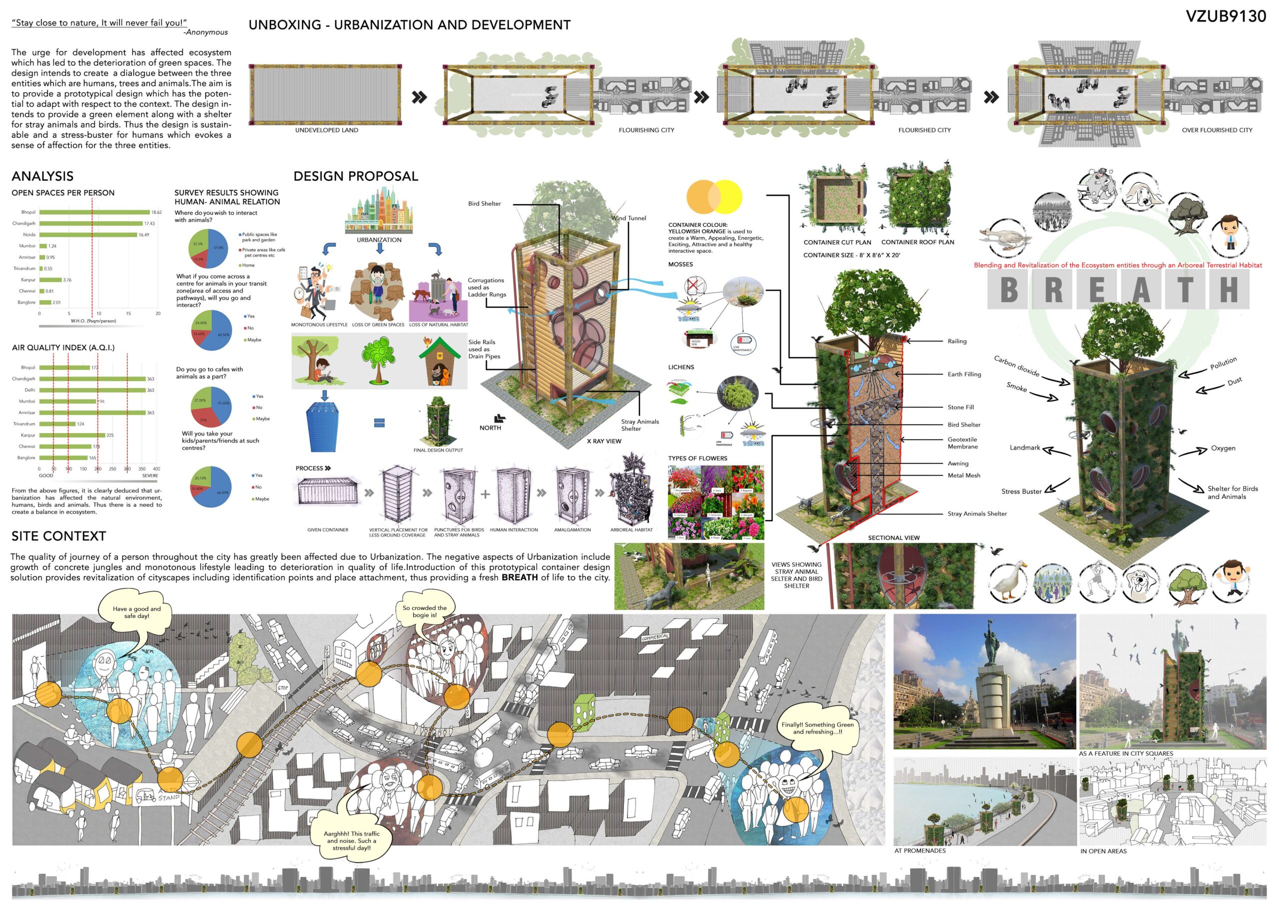UNBOX is an urban design intervention aimed at restoring ecological balance and improving environmental quality within dense urban contexts impacted by rapid urbanization. The project introduces a modular vertical structure that acts as a breathing element, integrating vegetation, habitat creation, and environmental remediation within the urban fabric. The design incorporates layered planting systems, porous structural components, and integrated habitats that support biodiversity while enhancing air quality and microclimatic performance. As an element of urban green infrastructure, UNBOX contributes to air purification, thermal comfort, and ecological regeneration in underutilized public spaces. Strategically located along key urban nodes and corridors, the intervention serves as both an environmental and social catalyst, fostering interaction while reconnecting the city with natural systems. Its modular and adaptable nature allows for scalable implementation across varying urban conditions. Overall, UNBOX establishes a sustainable urban prototype that strengthens ecological resilience, enhances environmental performance, and contributes to the revitalization of the urban environment.
